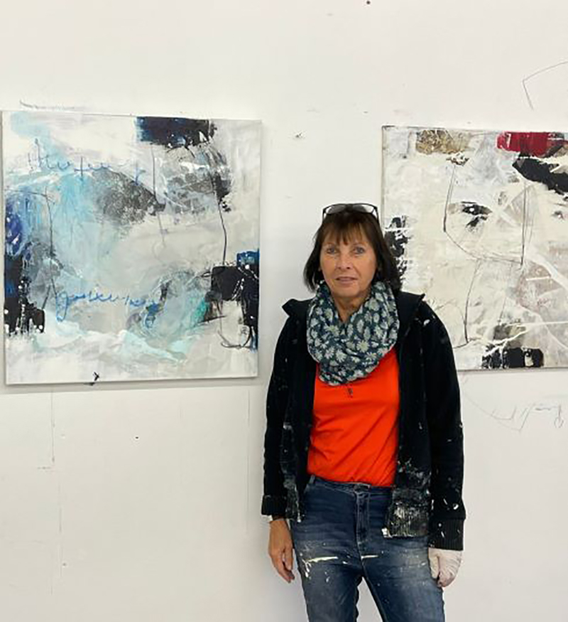 Traude Schrade ist eine Malerin, die sich der abstrakten Kunst verschrieben hat. Ihre Werke entstehen im intensiven Dialog mit Farbe, Struktur und Material. In vielschichtigen Arbeitsprozessen baut sie ihre Bilder Schicht für Schicht auf – jede Ebene erzählt ihre eigene Geschichte und bleibt dennoch Teil eines harmonischen Ganzen.
